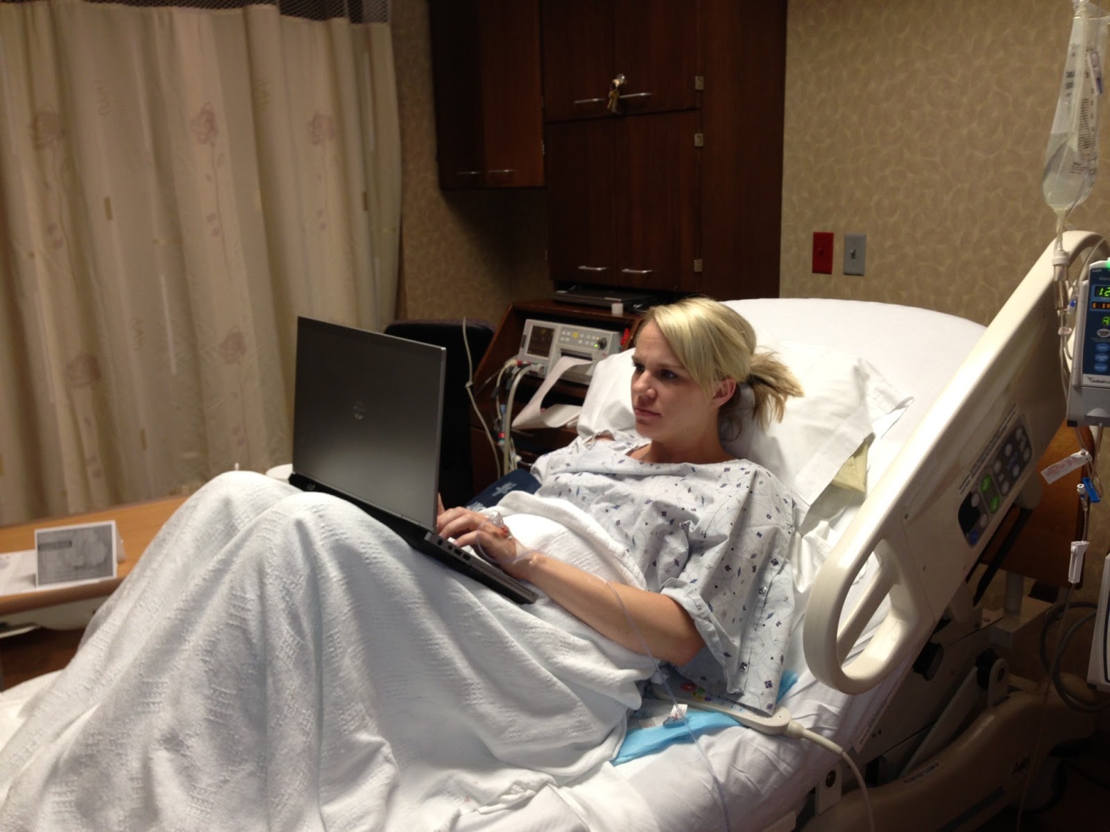 I then called my co-worker and told her to bring me my laptop and some files from my desk. Since I was still four weeks away from my due date, I had nothing wrapped up at work, so I told her we'd have to go over a few things while I was laboring. Yes - you read that correctly, I was working on work while I was in labor. More than a few people thought I was off my rocker, which I slightly was at that point.